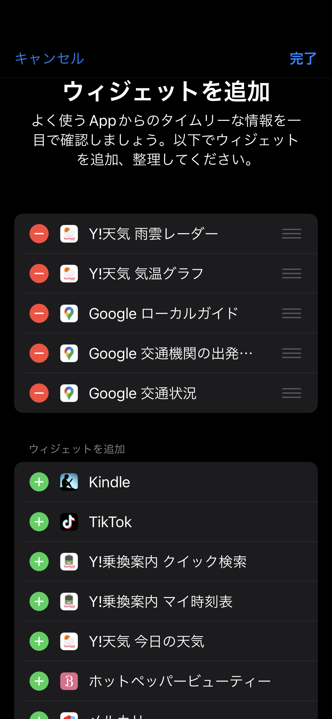 朝起きたら移動所要時間のウィジェットのみ表示されなくなり、追加する欄からも消えていました。