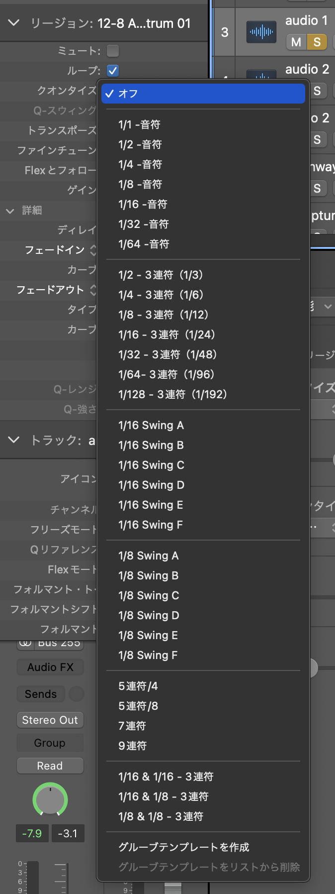 ちなみに同じパソコンのGaragebandでは連動せずにトラック別に違う強さでタイムクオンタイズをかけられたので、Logicでそれができないということはないと思うのですが…