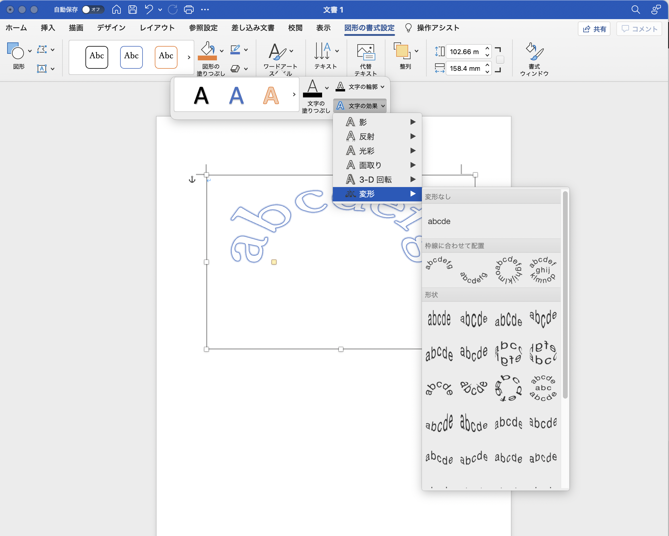 wordのワードアートで、以前あった「変形」のバーが見つかりません。できなくなってしまったのでしょうか?