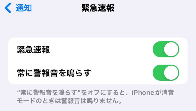設定で緊急速報をオンにしていることも確認済みで、機種はiPhone12,iOSも先日アップデートしたので最新です