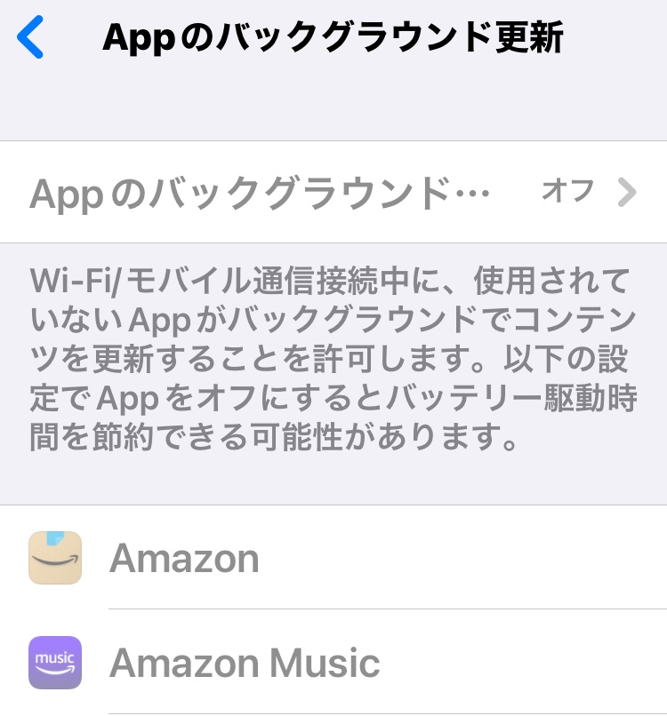 購入して間もないのですがバッテリーの減りが早く、バックグラウンドをオフにしましたが、オンに戻せなくなりました。オフのところをタップしても反応ありません。教えていただけませんか?
