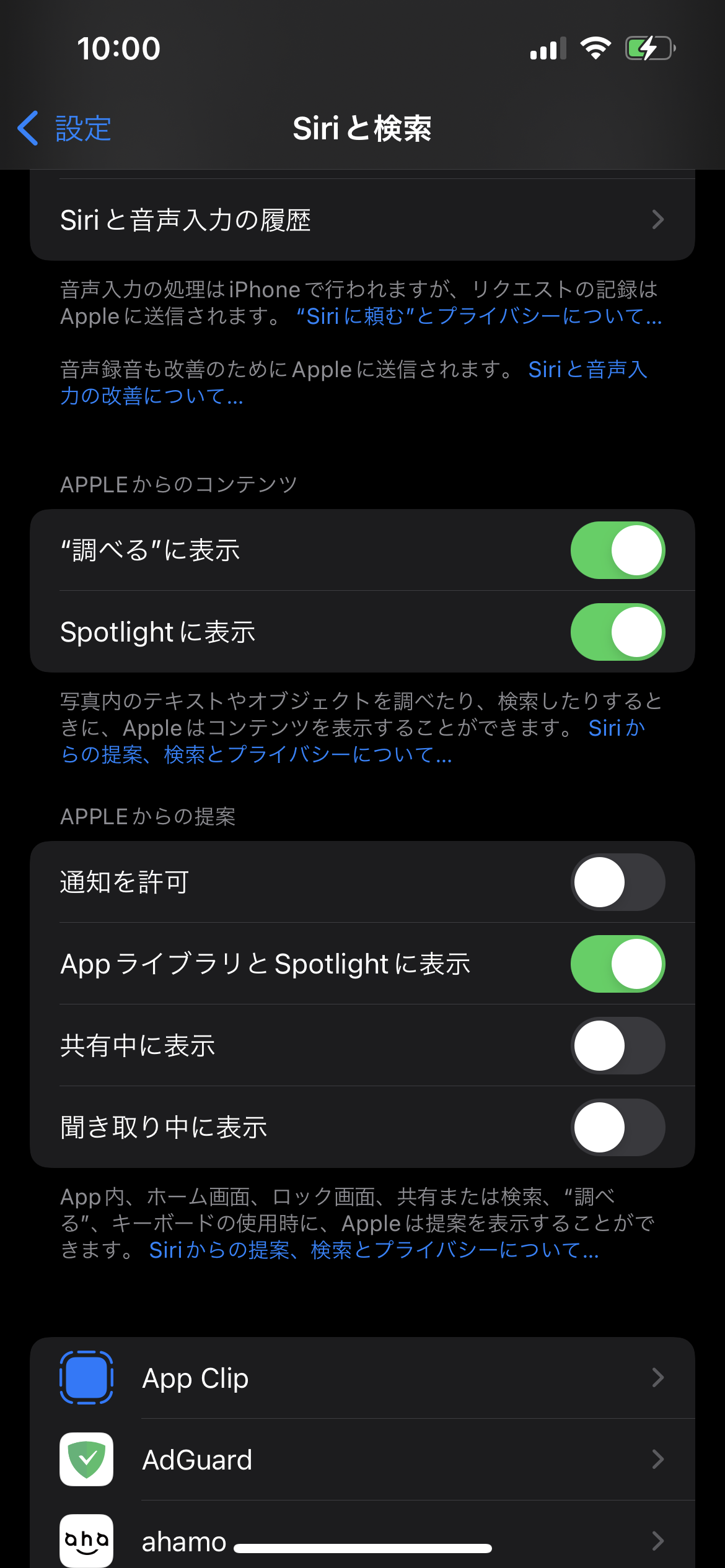(AppライブラリとSpotlightに表示は使用したいためONのままです。)