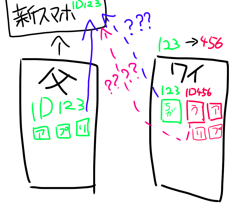 以前は父と同じApple IDを使用していて、 アプリなどを購入していたのですが13歳になった年から自分のApple IDを作り使用するようになりました。 ここで問題なのですが、以前の父用Apple IDで購入したアプリは、誰名義で購入したことになっているのでしょうか?また、父がApple IDでスマホの機種変時に引き継ぎをする場合、この以前のApple IDで購入した、私のスマホ(現在のApple IDのスマホ)に入っているアプリも引き継がれるのでしょうか?