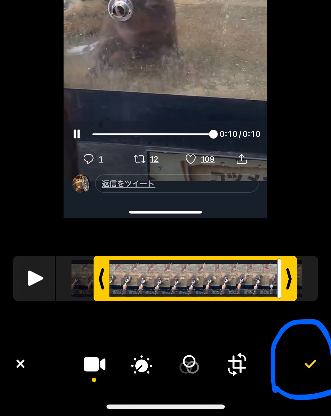 ・写真/動画の編集画面のチェックマーク押せない