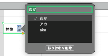 Mac版Numbers バージョン12.1(7034.0.86)で確認したところ、フルネーム全体を範囲選択した場合や、名前部分のみ全体を範囲選択した場合だと、入力フィールドが表示されない場合があるようです。1文字選択した状態だと設定できそうです。