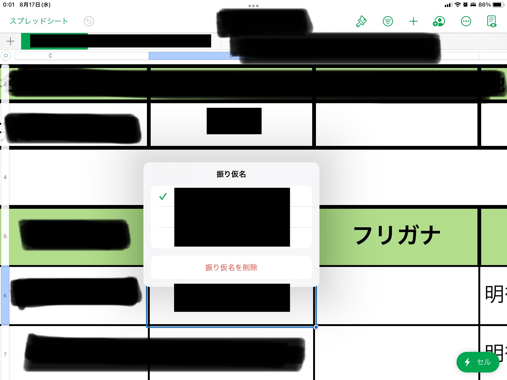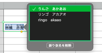 既存の振り仮名を一旦削除して、お名前を1文字ずつ選択して別個に振り仮名を設定してみると良いかもしれません。
