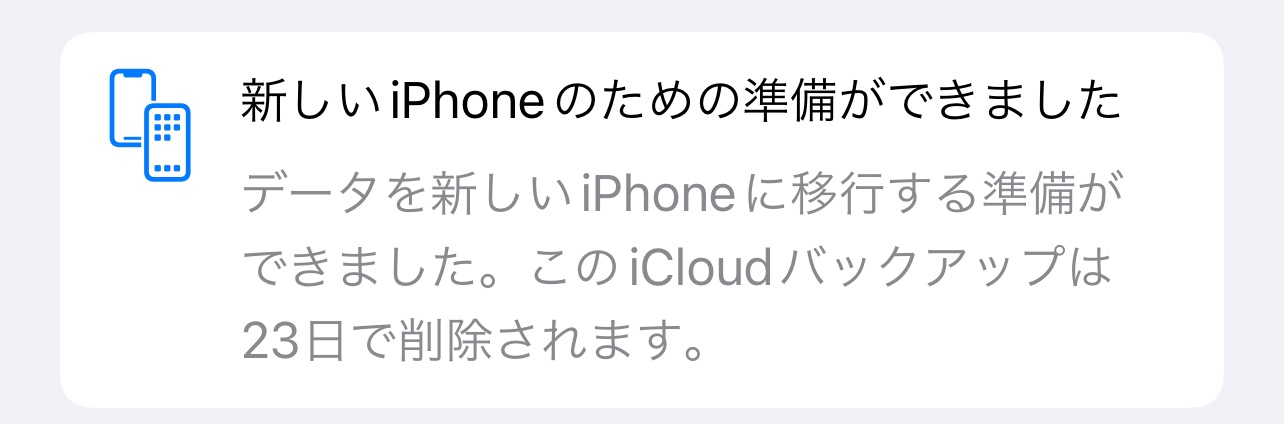新しいiPhone の準備ができました 23日経過し通知消えるか