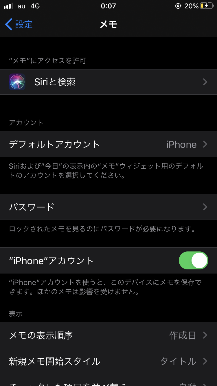順通りにやってみましたが設定>メモ>の次がデフォルトアカウントしかなく、auの欄がありませんでした…(iPhoneとiCloudしかない)