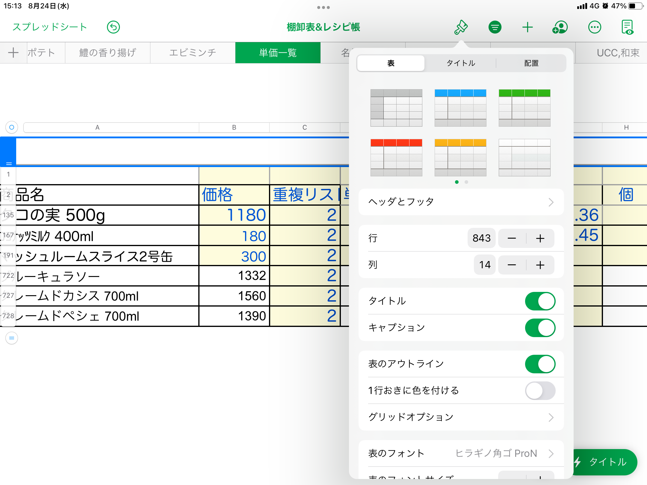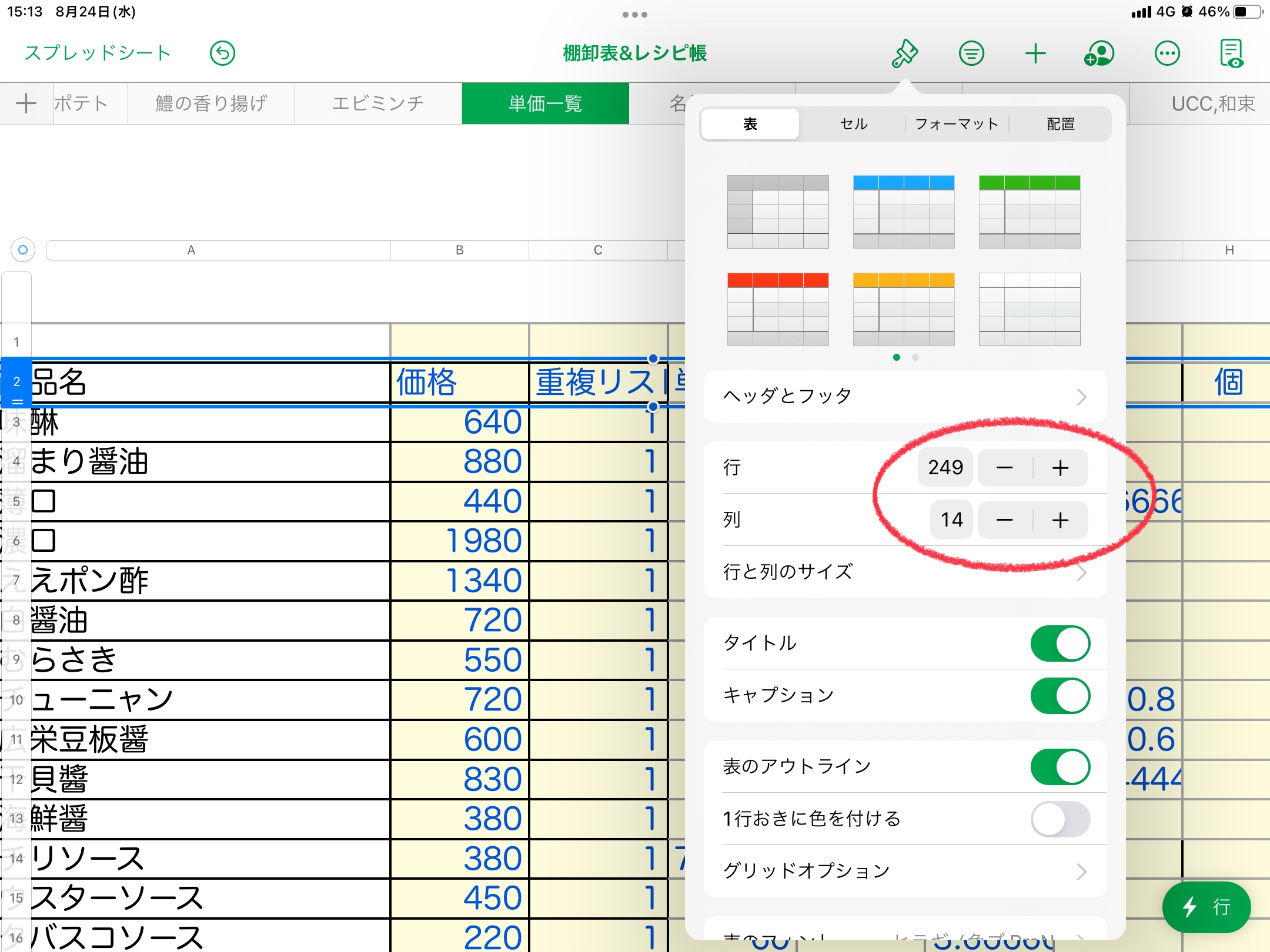 iPadのNumbersで表、セル、行、および列を選択する - Apple サポート (日本)
