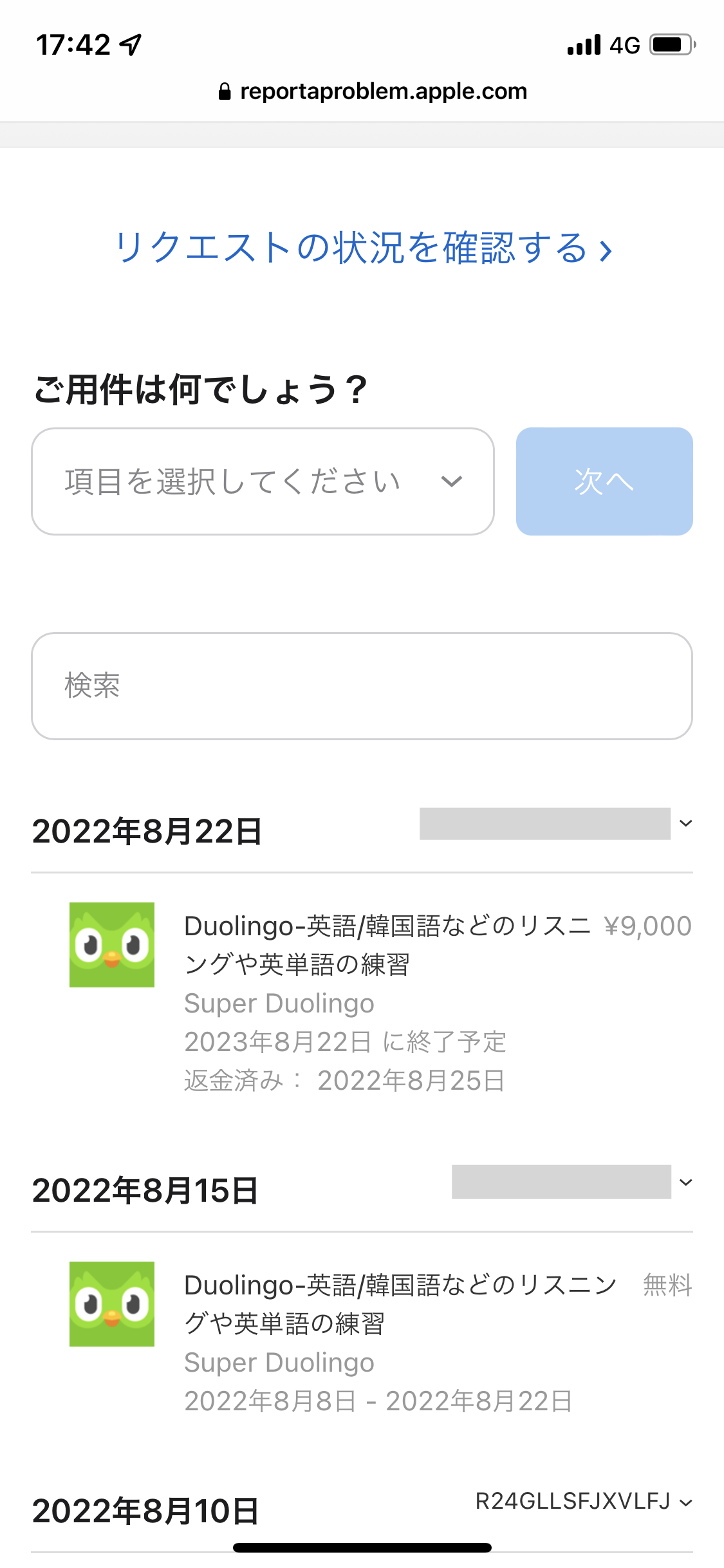 返金手続きの進捗を確認できます。最大60日かかるようです。