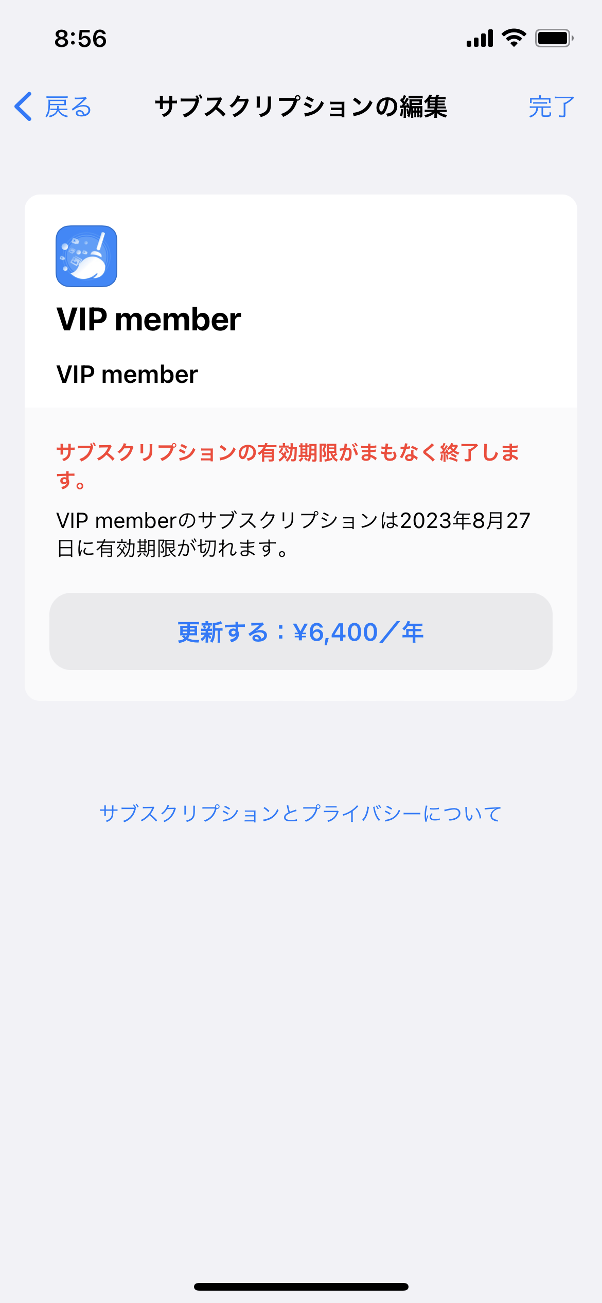 「サブスクリプション」の画面の「クリーンエキスパート」に、「2023 年 8 月 xx 日に終了予定」等と表示されていませんでしょうか?