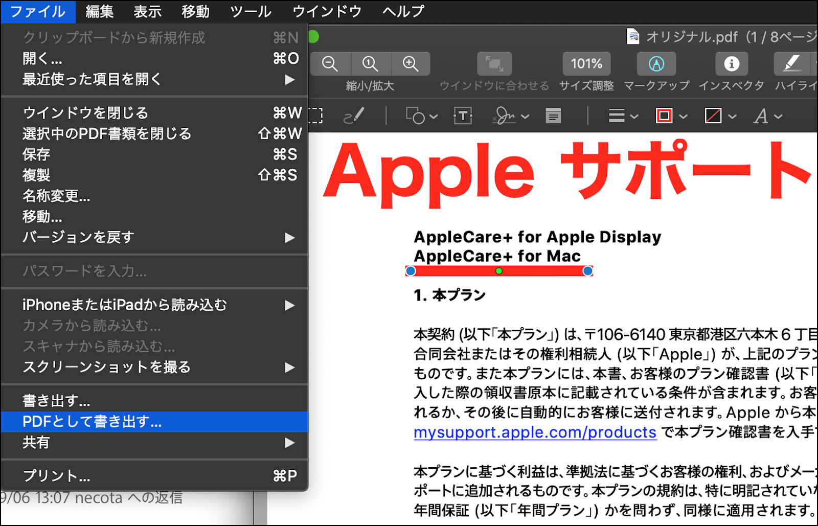 保存したpdfをプレビューで開くと、編集内容は埋め込まれた状態になり、変更(編集)不可になりました。