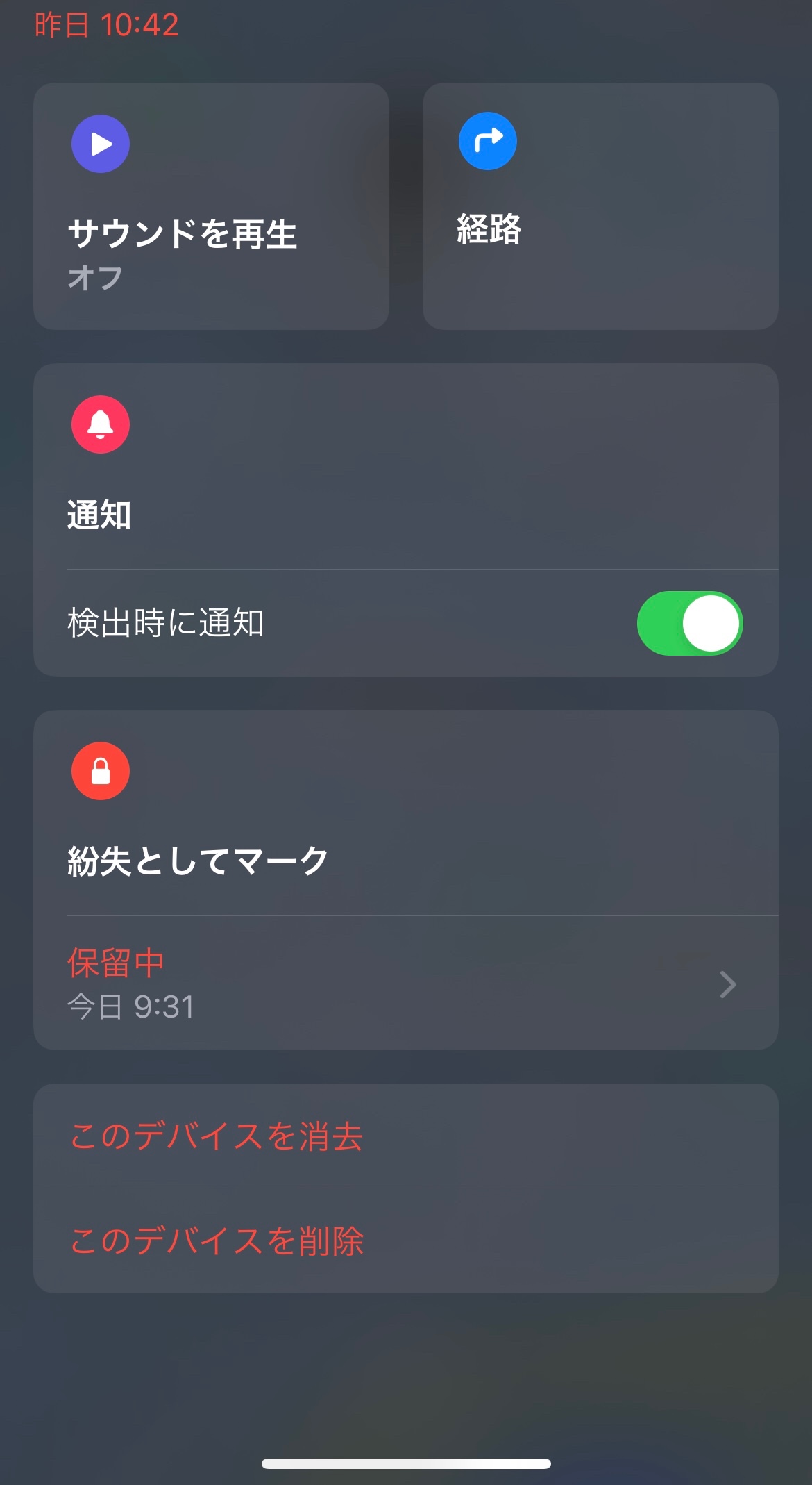 今朝会社に行って探してみましたが見つからず、サウンドを再生させてもどこからも音が聞こえなかったのですが、これは充電がなくなっているからでしょうか。また、赤文字で書かれた時間も昨日の夜から更新されておらず、今でも会社にあると表示されています。紛失としてマークはしたのですが、これは諦めるべきでしょうか。また、誰かに盗まれたということもありえますか?