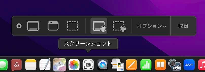 ドックに置いてある「スクリーンショット」をクリックでも同じことは出来ます。