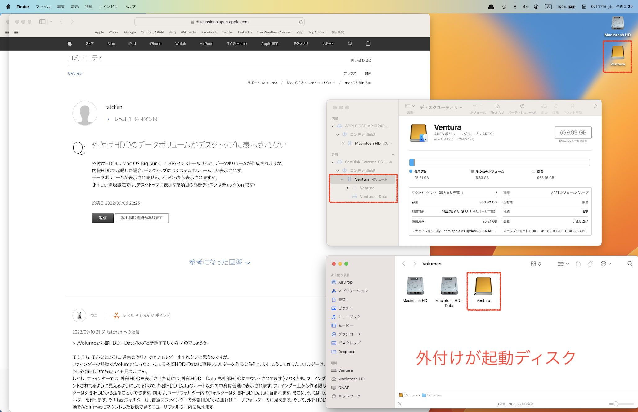 外付けにOS(Ventura)をインストールする機会があったので確認してみました。