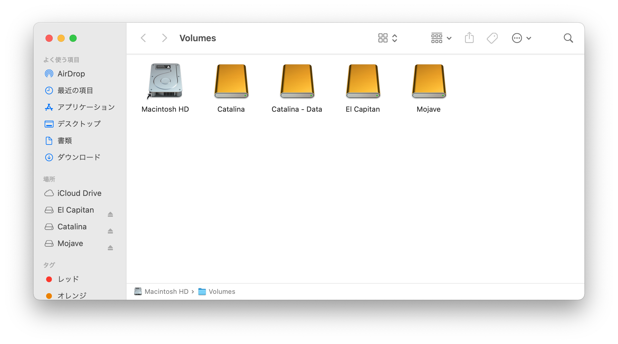 ファインダーではMacintosh HDとしか表示されません。この中身にはMacintosh HD - Dataも含まれてます。