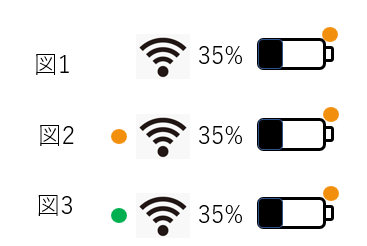 こんにちは。iPad(第6世代) iOS 15.6.1 ホーム画面で、右上の電池マークの右側に隣接して小さなオレンジ色の丸印が出現するようになりました(図1)。アプリを立ち上げているときに表示される電池マークにはこの丸印は出ません。ロック画面にすると丸印は消えます。ホーム画面でiPadを縦方向にしたときには丸印は消えます。横方向にしているときだけ出現します。ちなみに、Siriを起動したときは(図2)のようにwifiマークの左側にオレンジ色の丸印が出て、これはマイクにアクセスされているという意味かと思います。また、カメラを起動したときは(図3)のようにwifiマークの左側に緑色の丸印が出て、これはカメラにアクセスされているという意味かと思います。これらのときも、電池マーク右側のオレンジ丸印は出現したままです。以上よりマイクやカメラの動作中を表す丸印と、電池マーク右側の丸印は別物だと思われます。iPadを再起動してみましたが、変化はありません。コントロールセンターを見ても、特にアプリが立ち上がっているような表示はありません。電池マーク右側に隣接するオレンジ色の丸印は何なのかご存知のかたはいらっしゃいますか?