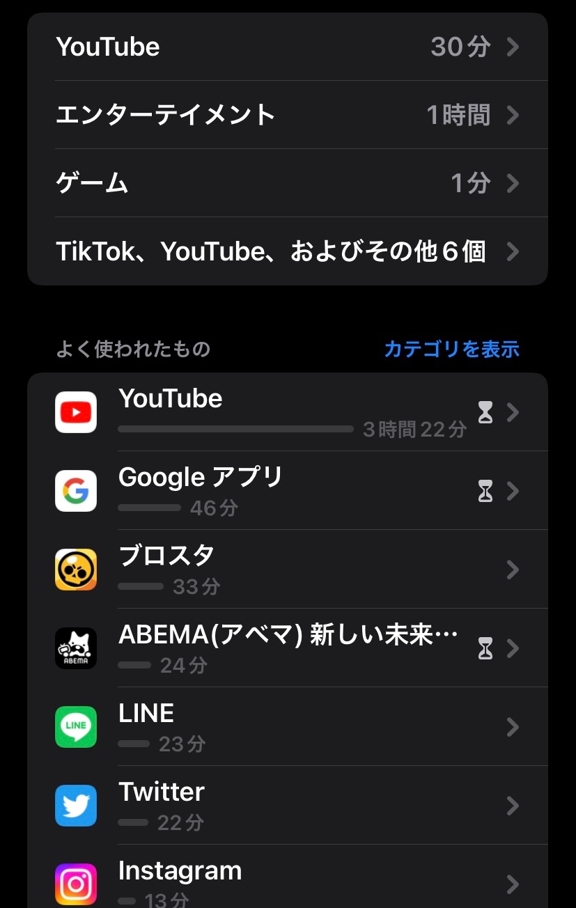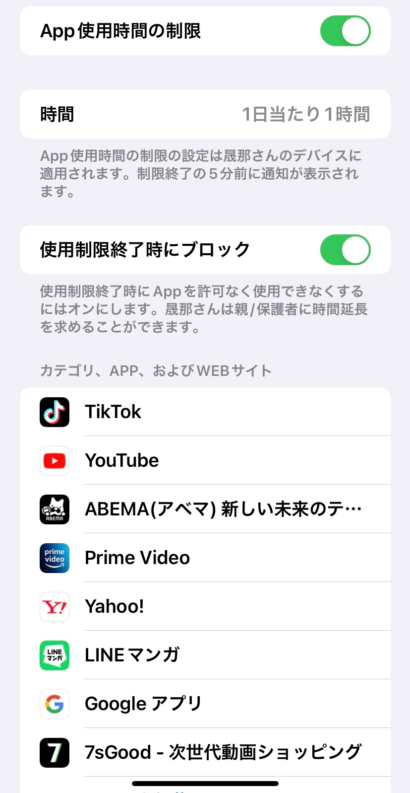スクリーンタイムで子供のスマホに制限をかけています。1時間にしていても砂時計マークが出ていても使えてしまっています。どうしてでしょうか?