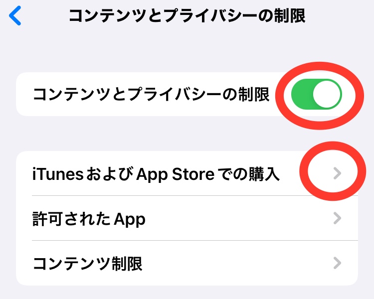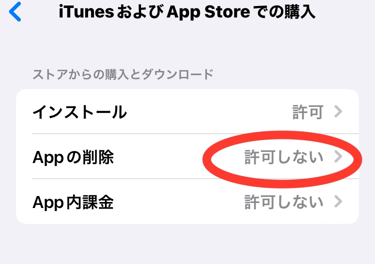 ①コンテンツとプライバシーの制限>「オン」、 ② iTunes および App Store での購入>App の削除>「許可しない」にし、③親のデバイスからお子さんのスクリーンタイムパスコードを変更してみてください。