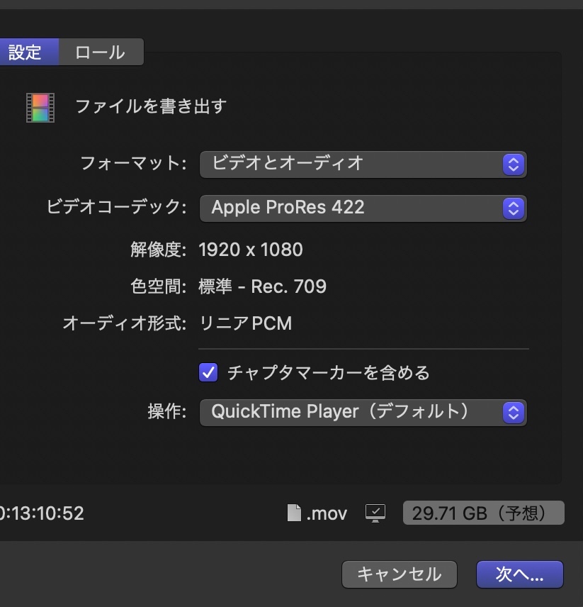 FINAL CUT Pro 書き出しが途中から進みません。