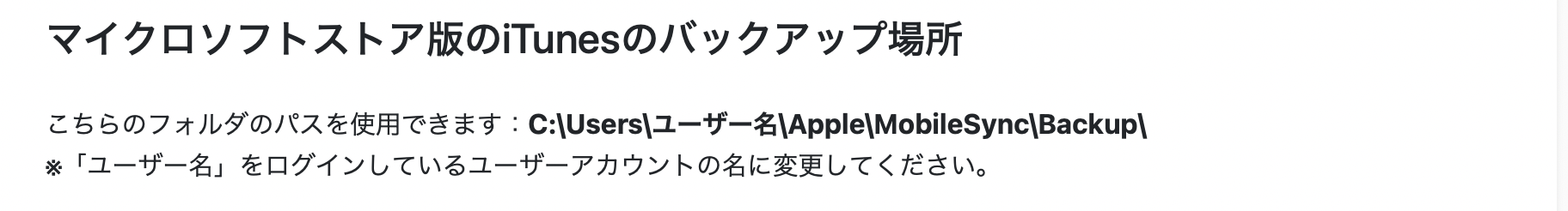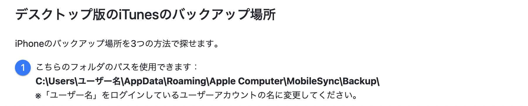「C:\ユーザー\(ユーザ名)\AppData\Roaming\Apple Computer\MobileSync\Backup\」