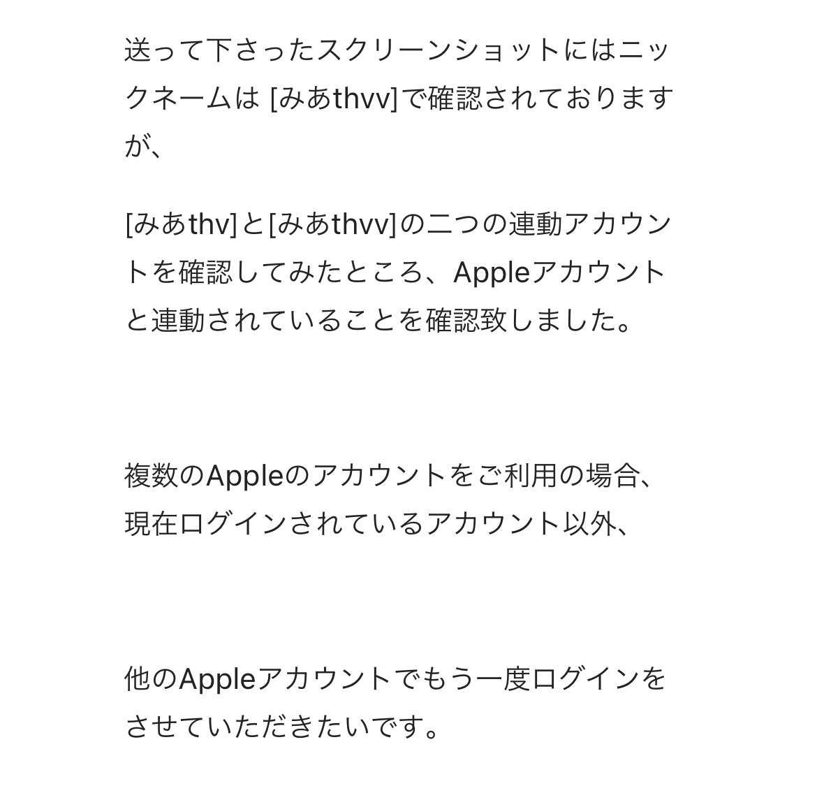 「複数のAppleアカウントをご利用の場合」って書いてあるのですが、Appleアカウント自体は1つしか作っていないんですよね…