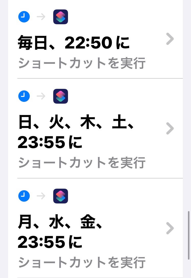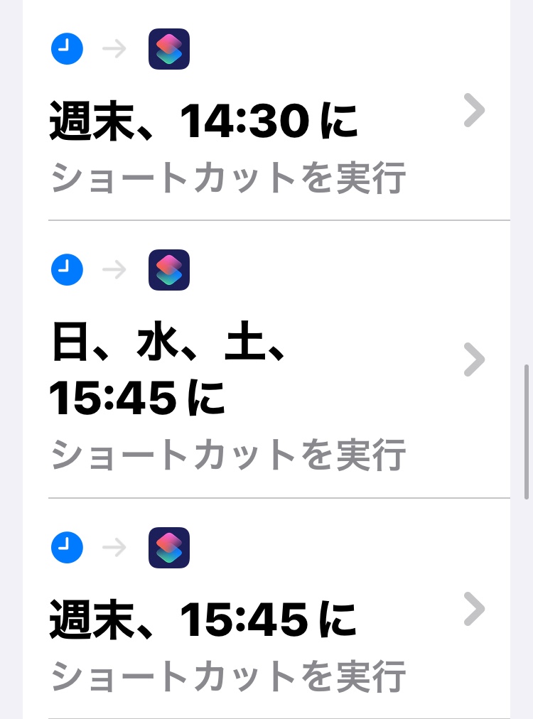 オートメーションのトリガーは時間×曜日の組み合わせで設定していて、全部で15種類くらになっています。