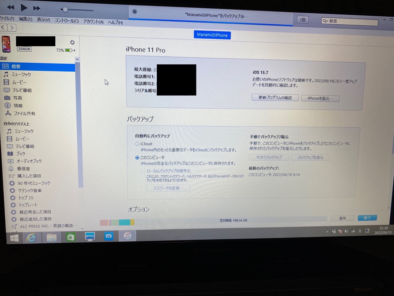 先程ご指示頂いた通りpcのバックアップのデータ削除は終わりましたが、iPhoneからpcへのバックアップが途中で止まってます。ここからどうすればいいか引き続きご教示願います