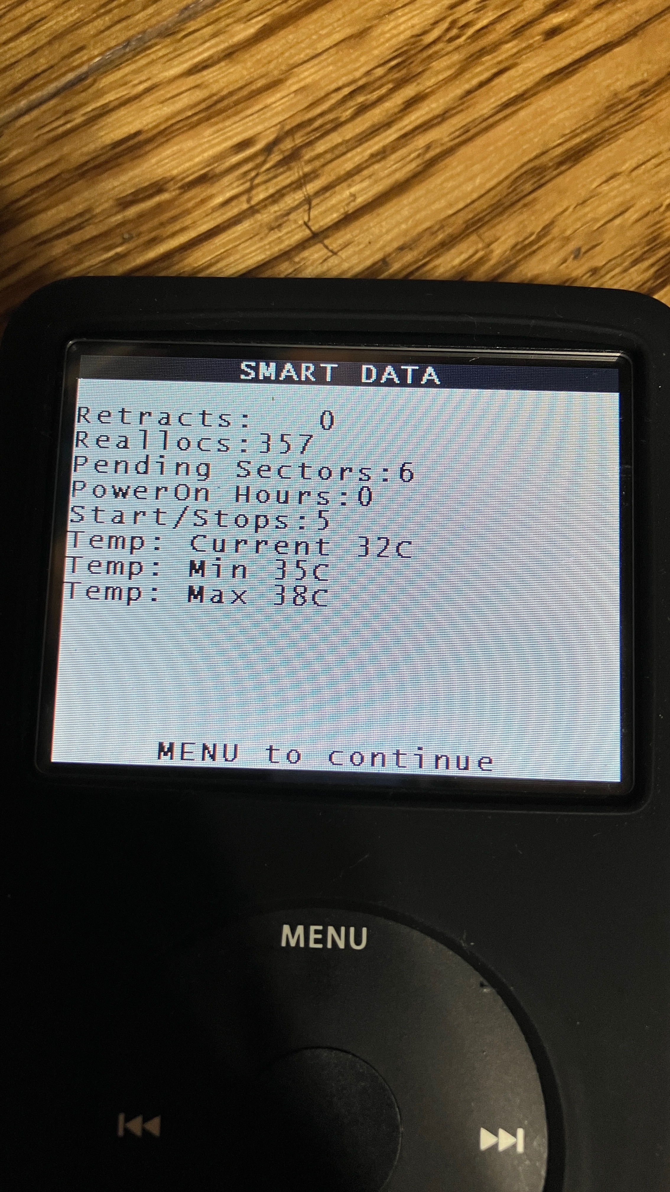 iPod classicの調子が悪く、起動しないので診断モードを起動して"SMART DATA"を確認してみました。