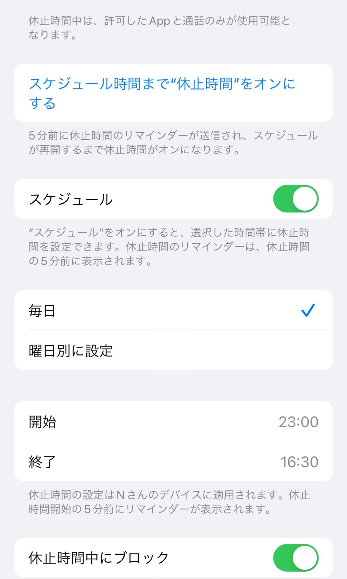 ①休止時間に使えている(常に許可するのアプリ以外も使えている。