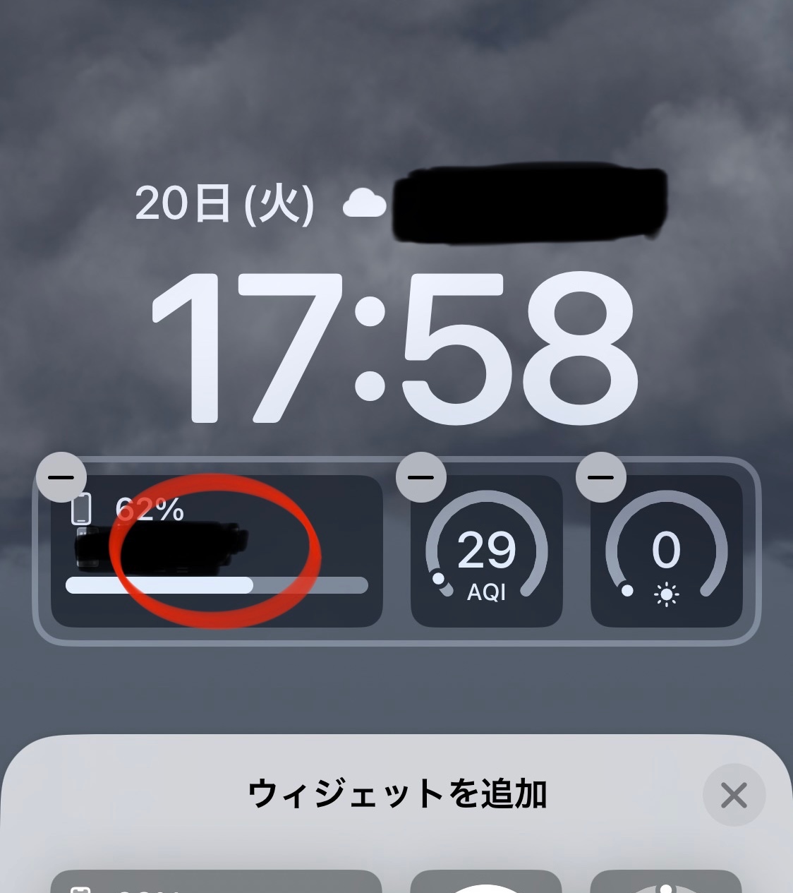 ロック画面のバッテリー残量ウィジェット表示設定