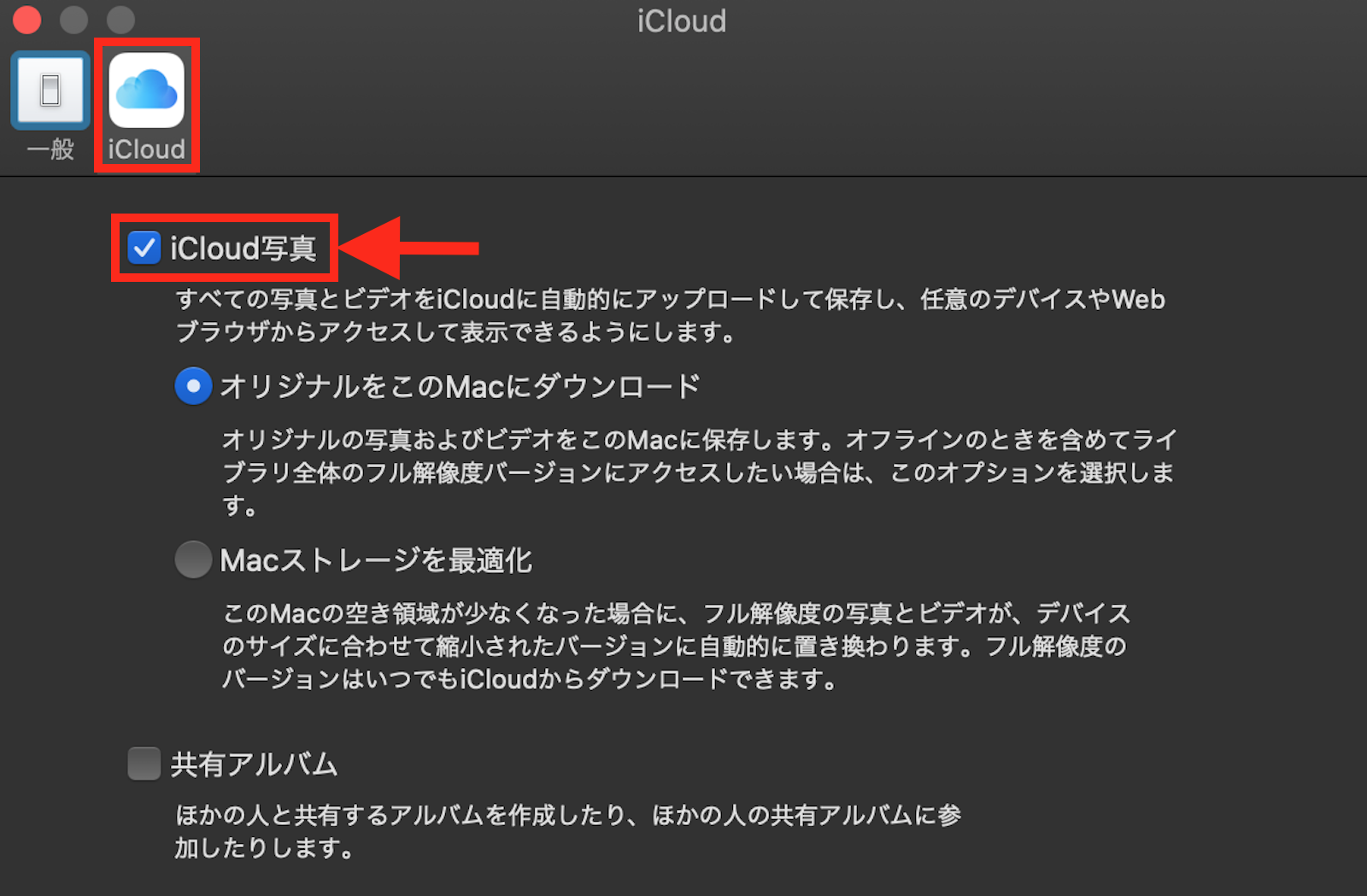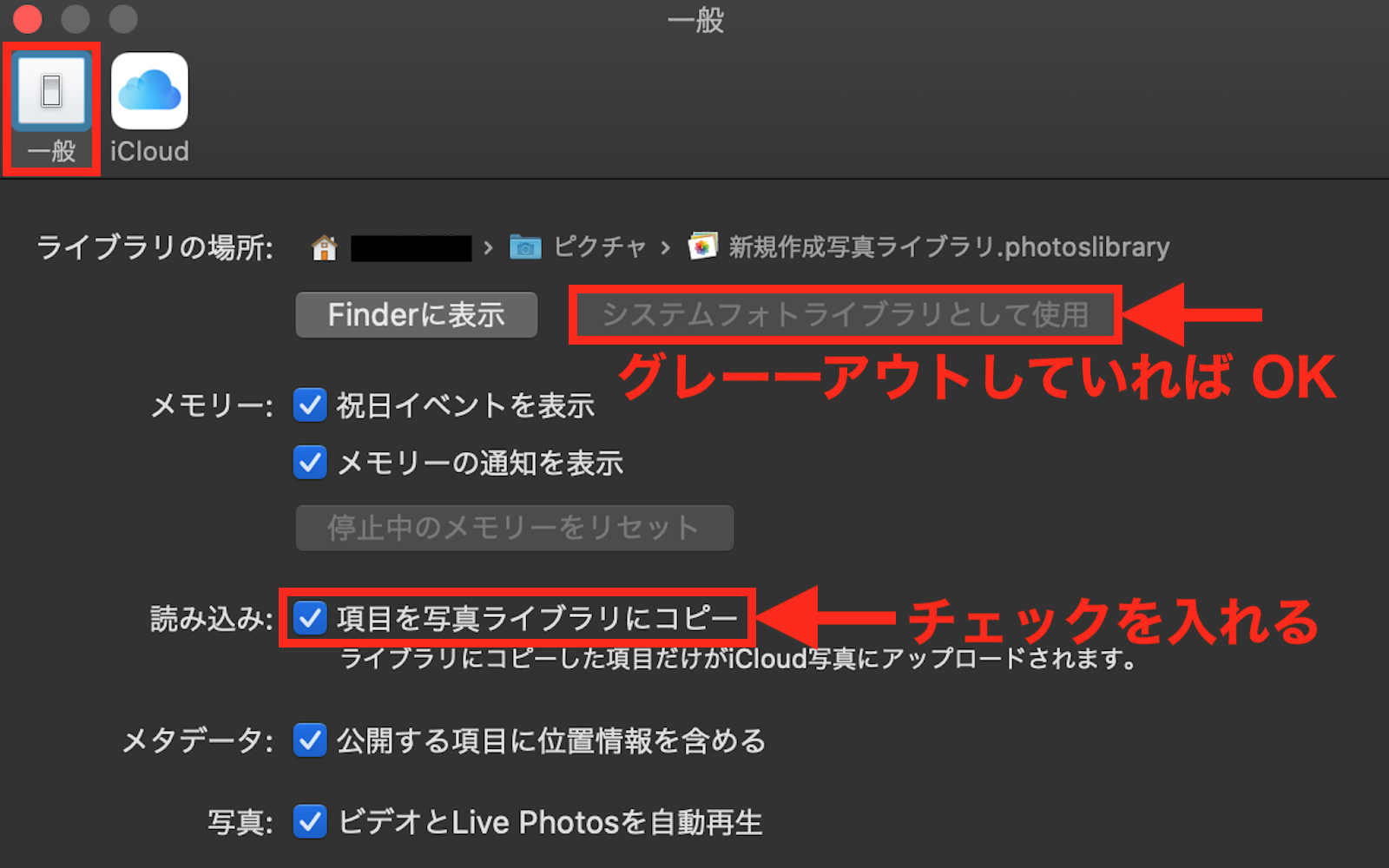 写真の環境設定>一般>システム写真ライブラリとして使用の後の