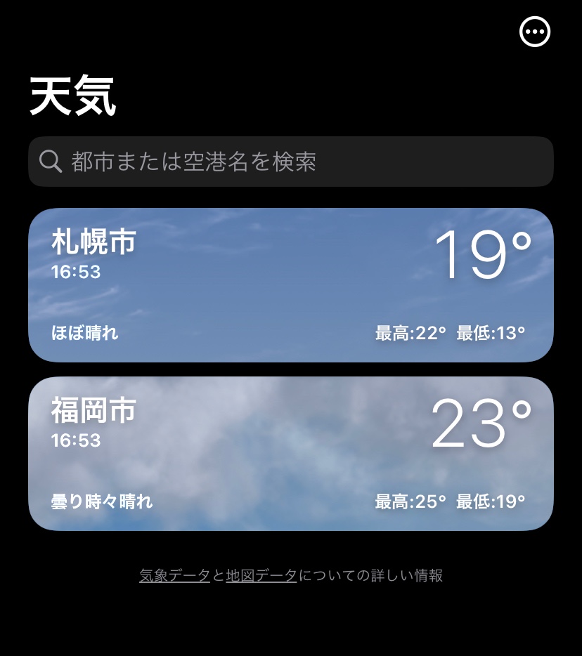 まぁそうなんですけど、天気アプリで指定した場所のリストを作成しておけば、ウィジットでも指定した場所の表示ができるんですよ。