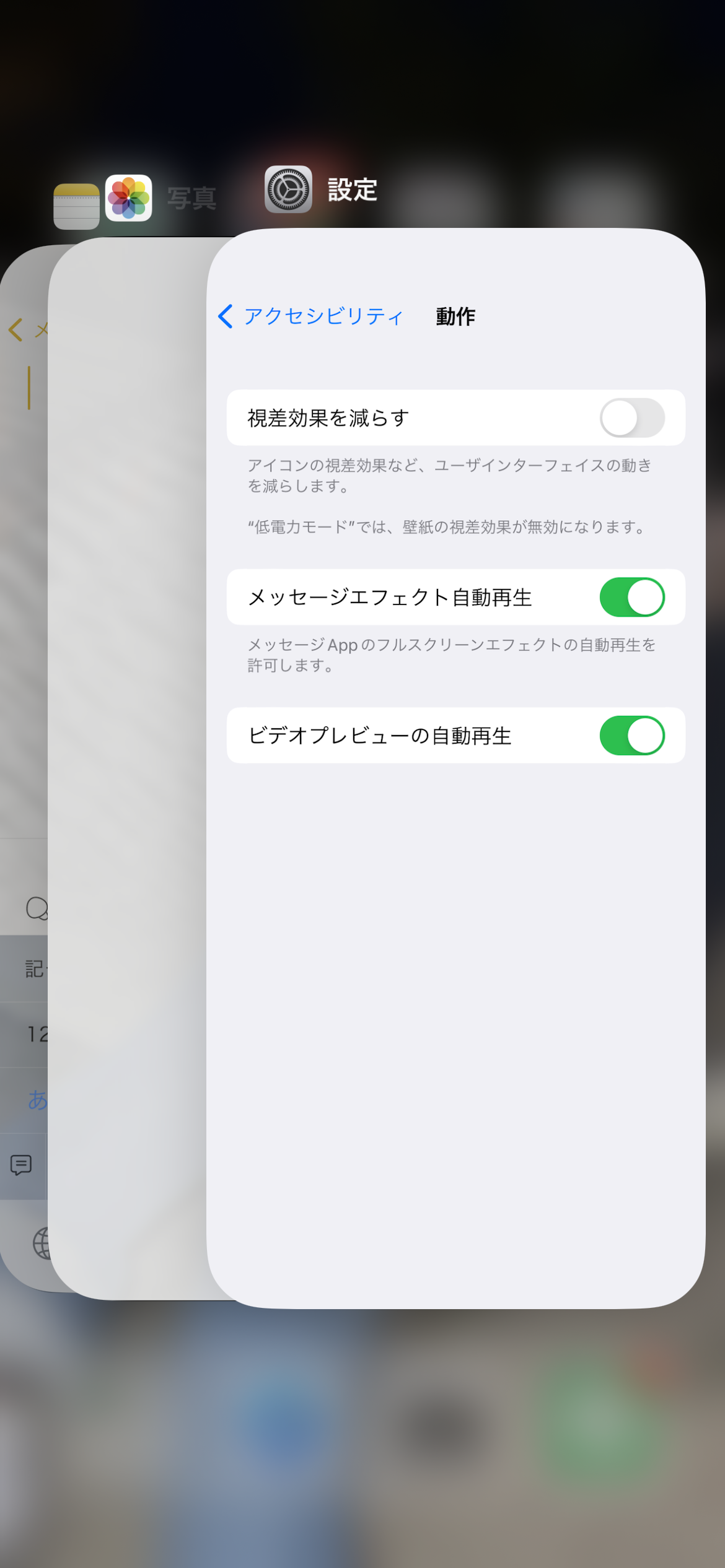 [視差効果を減らす]をオンにすると映らなくなります。