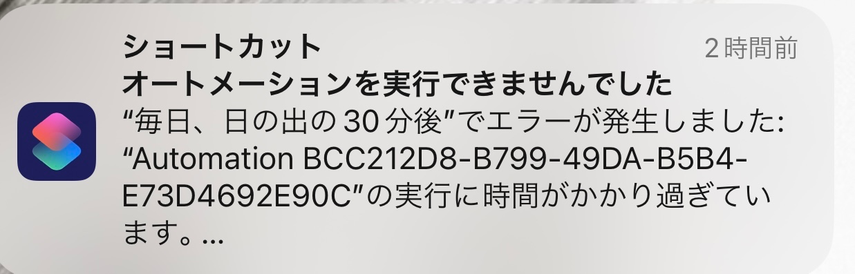 オートメーションで、時刻を設定していたときには実行されていたが、日の出に変更したら実行されなくなった。OSは15.7