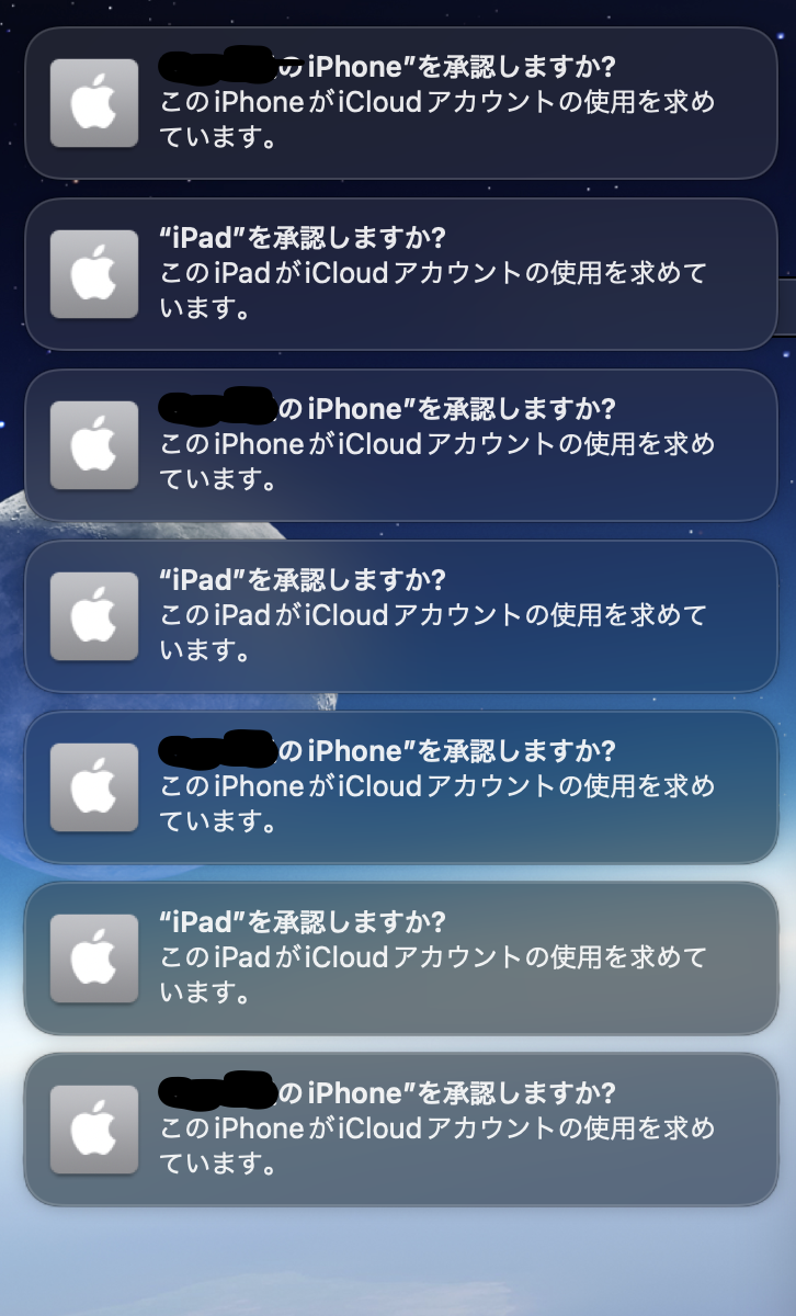 iPhoneを承認しますか?、iPadを承認しますか?等の確認が何回承認しても何度も出てくるのですが、出なくなる方法はないでしょうか?Macの右上に出てきます。