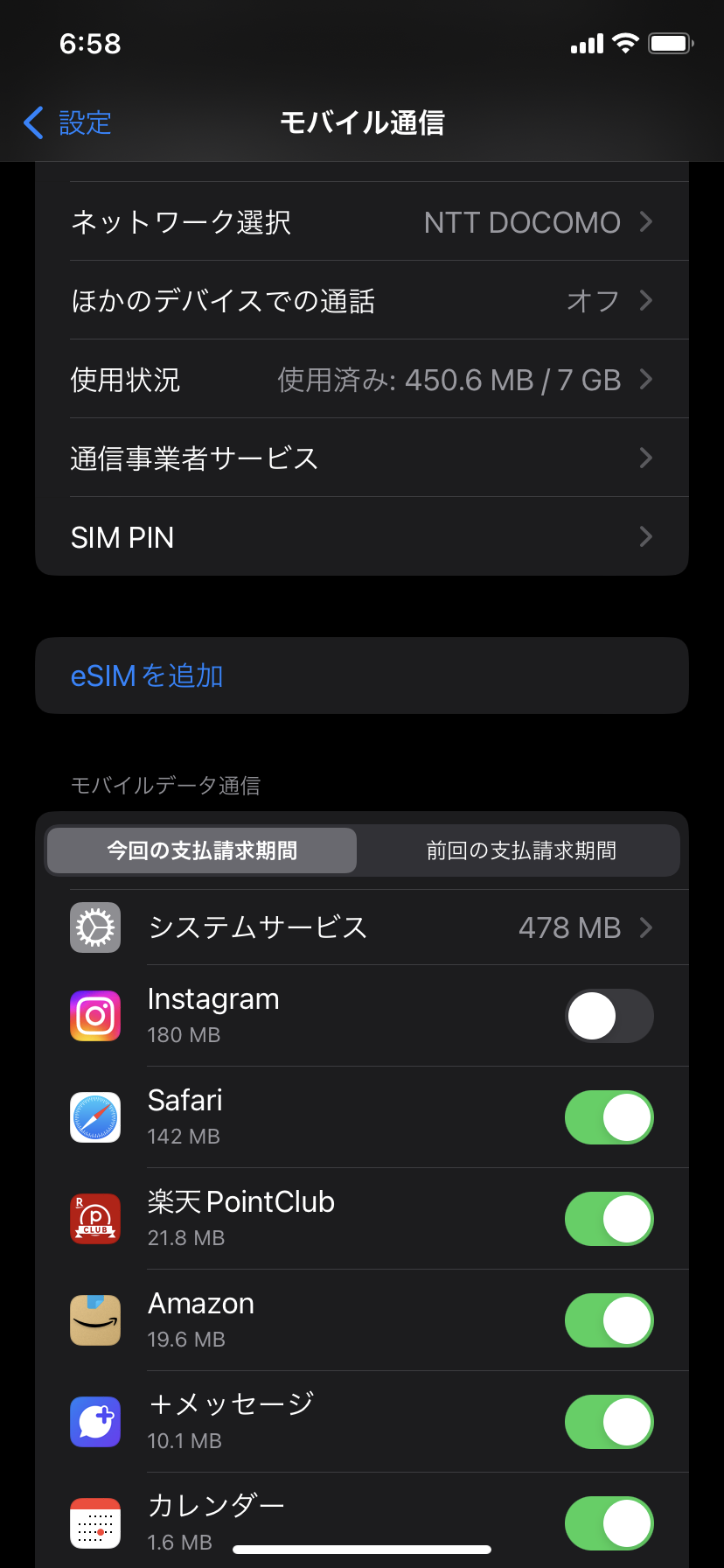 ドコモからデータ量が増え料金が上がるメールが来てさっきシステムサービスを確認したら