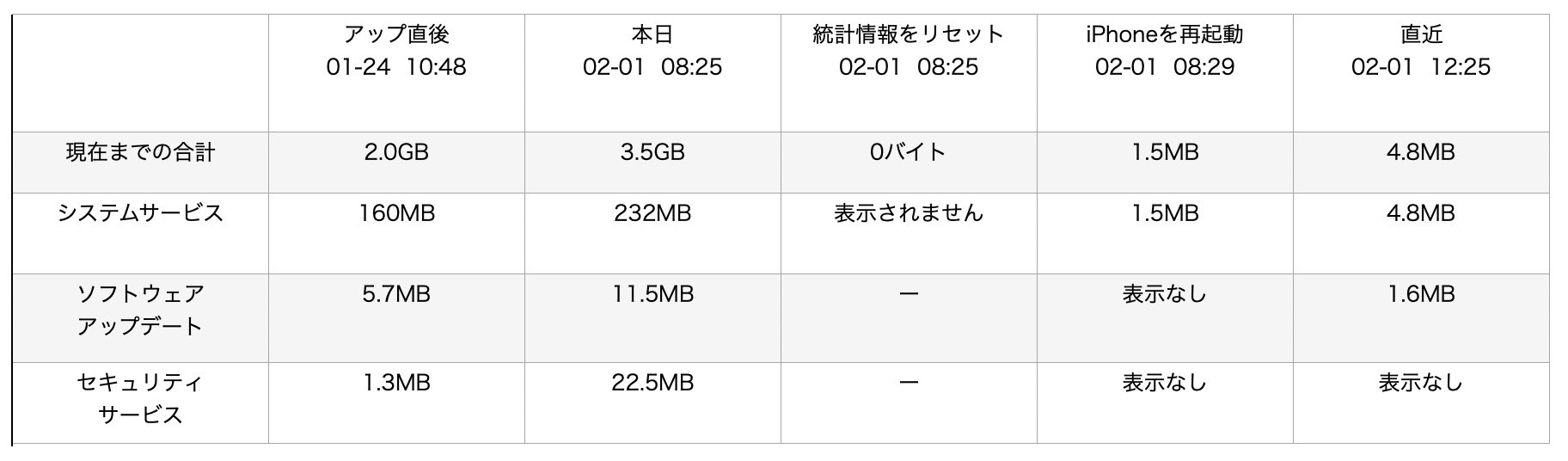 iPhoneを再起動して、使用量の変化を見てみたいと思います。