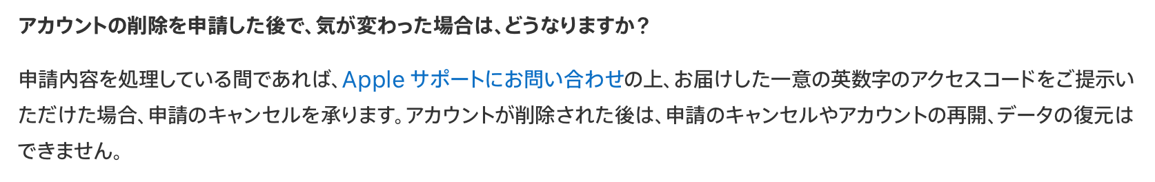 現在削除が進行中のようですが、削除の中止を申請するにはAppleへの電話しかないのでしょうか?