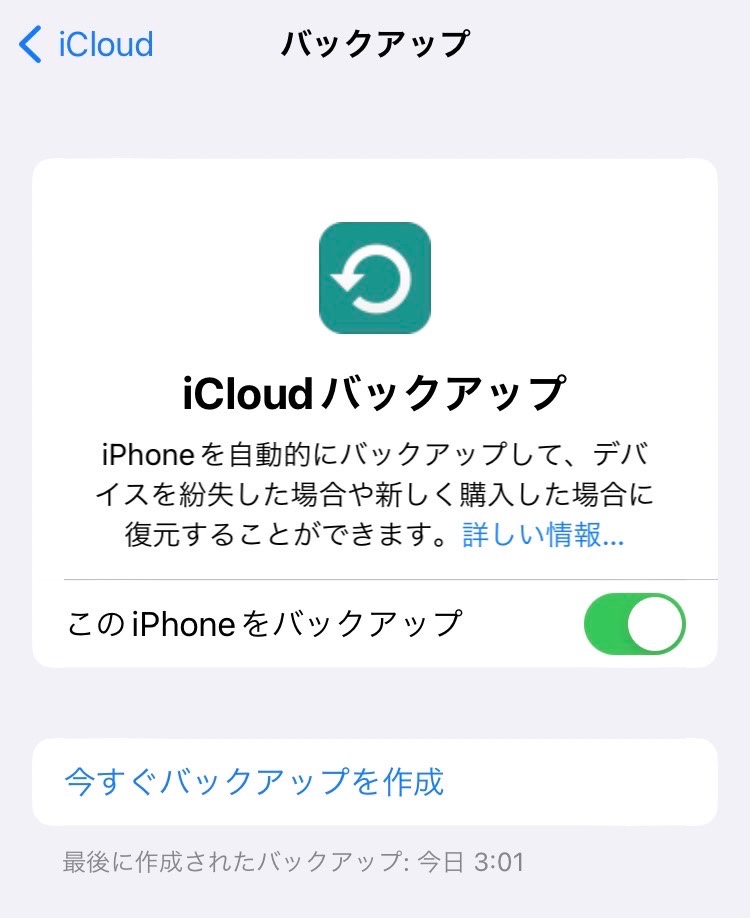 設定→自分の名前→iCloud→iCloudバックアップ
