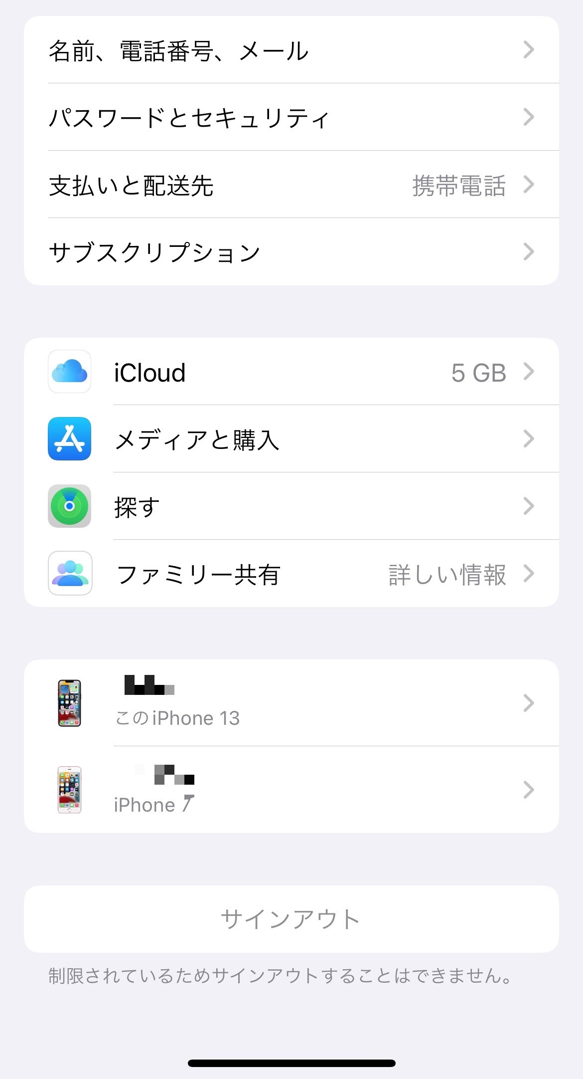 今後も7をサブ機として使うつもりなら、同じApple IDを設定したまま使うというのもありです。この時は、iCloudで同期する項目を選択すれば、13と7で同じApple IDを設定してても、中身を変えることはいくらでもできます。