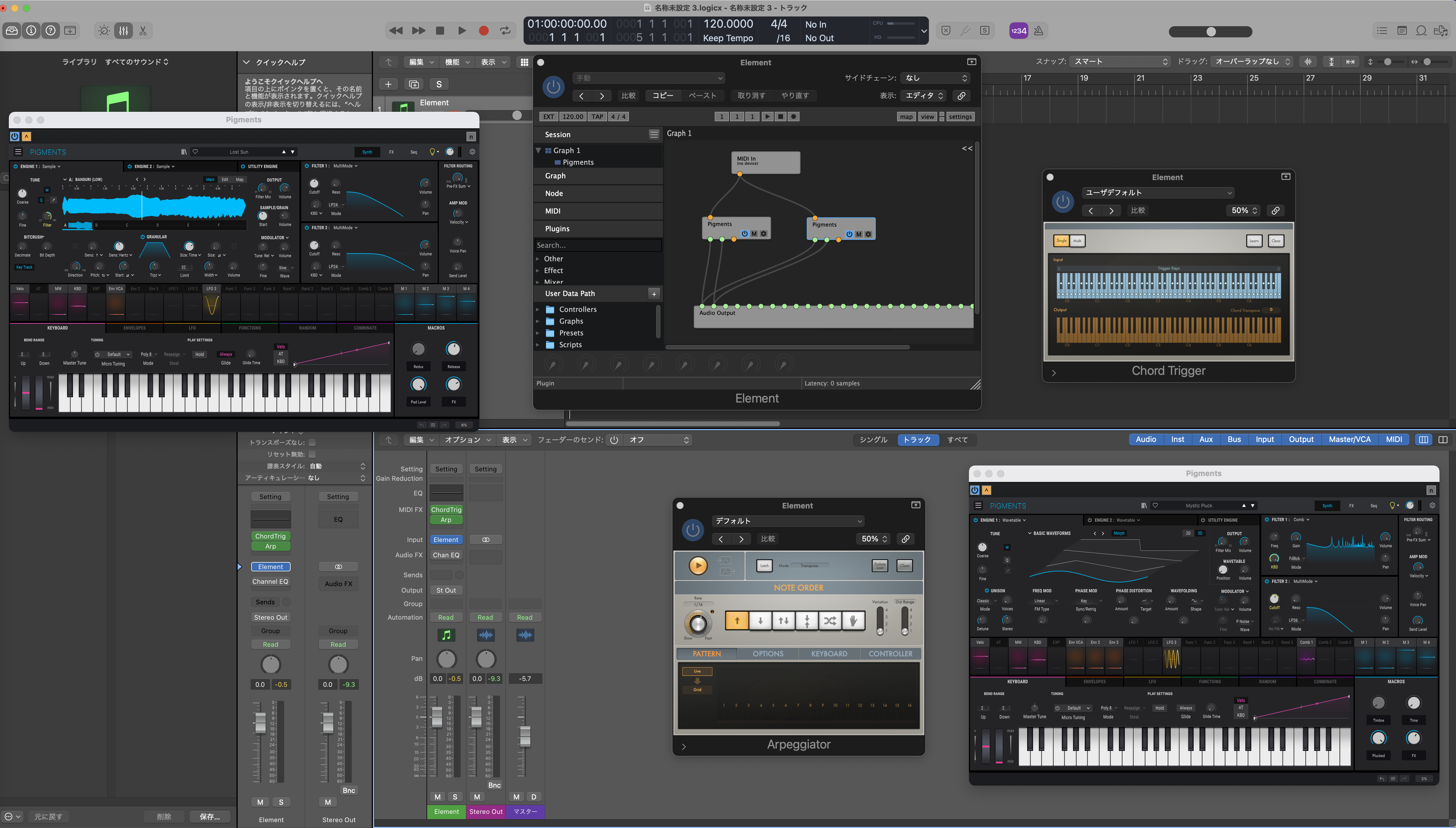 ・使用している音源自体は(多分)一つのトラックで一つの音しか鳴らせない音源(RetroSynth, Pigments 3など)です。