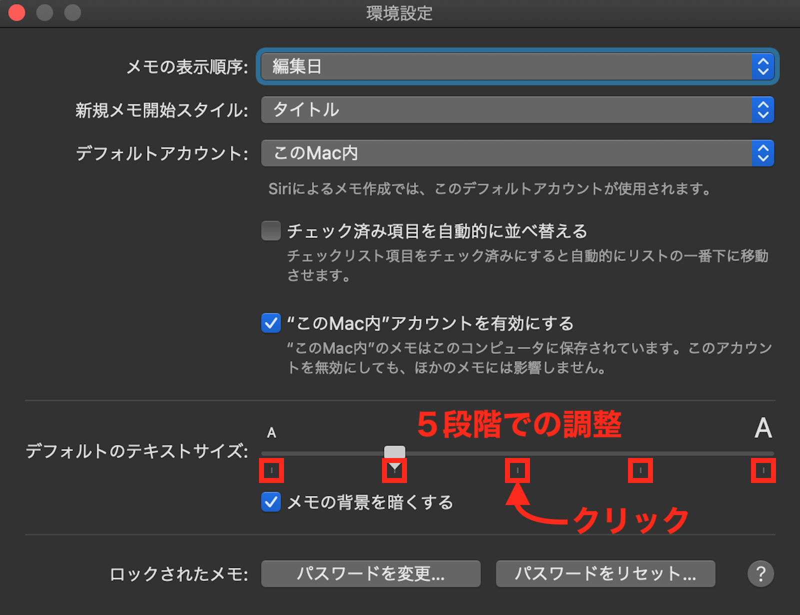 メモのテキストサイズの一括変更
