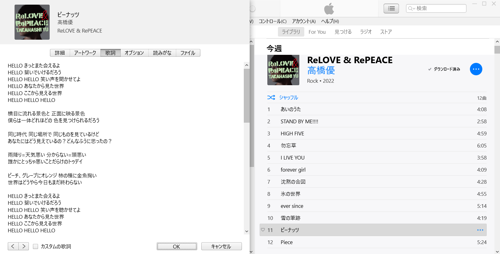 もちろん、iTunes上の『歌詞』のタブにて、