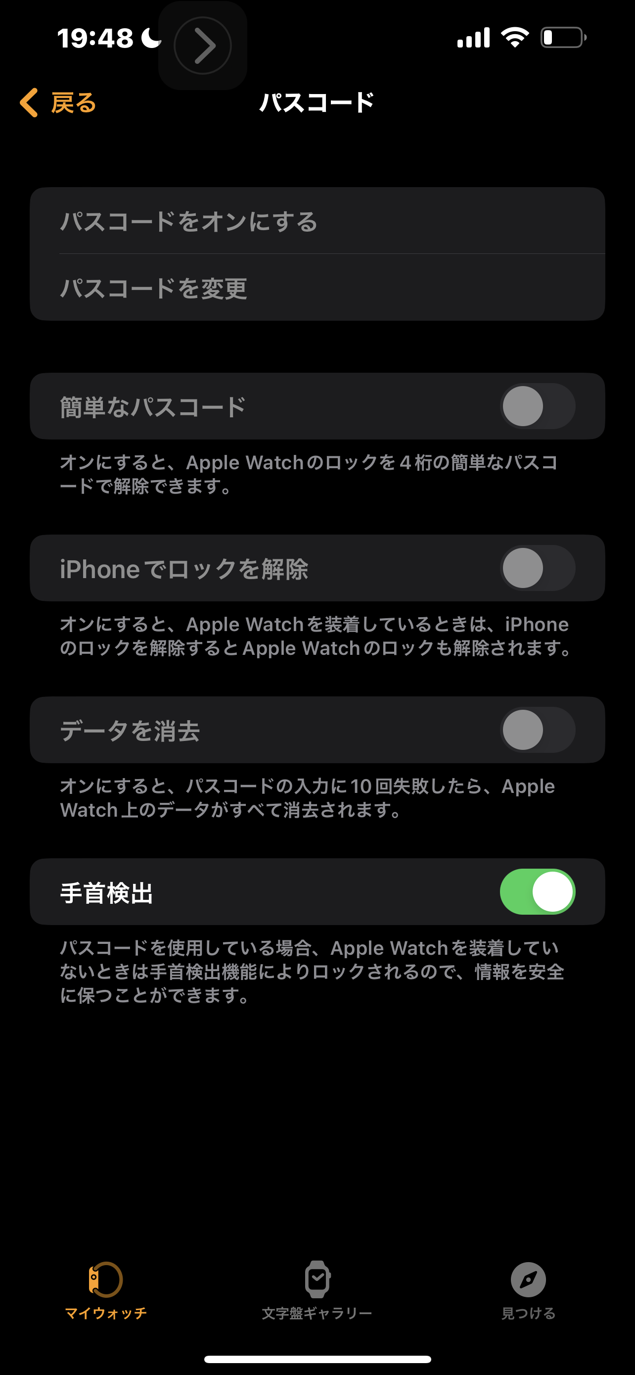 Apple watch のパスコードが無くなり、設定もできない