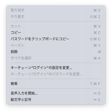 しかし「キーチェーン"ログイン"のパスワードを変更」の項目がグレイアウトしていて、選択できません。