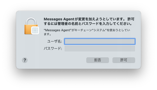 「Messages Agentが変更を加えようとしています。」というポップアップが表示される