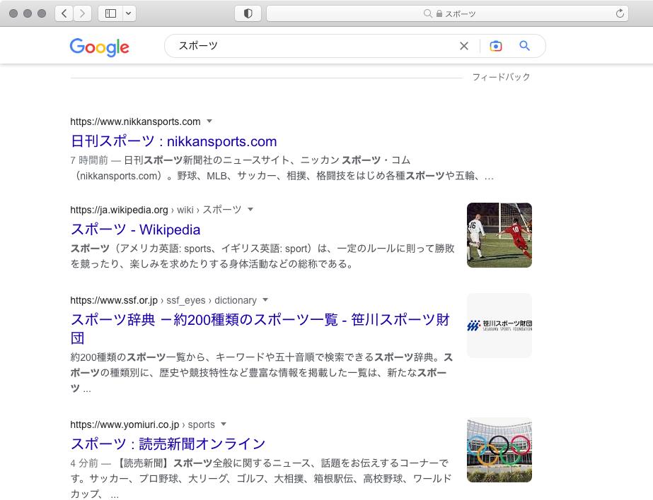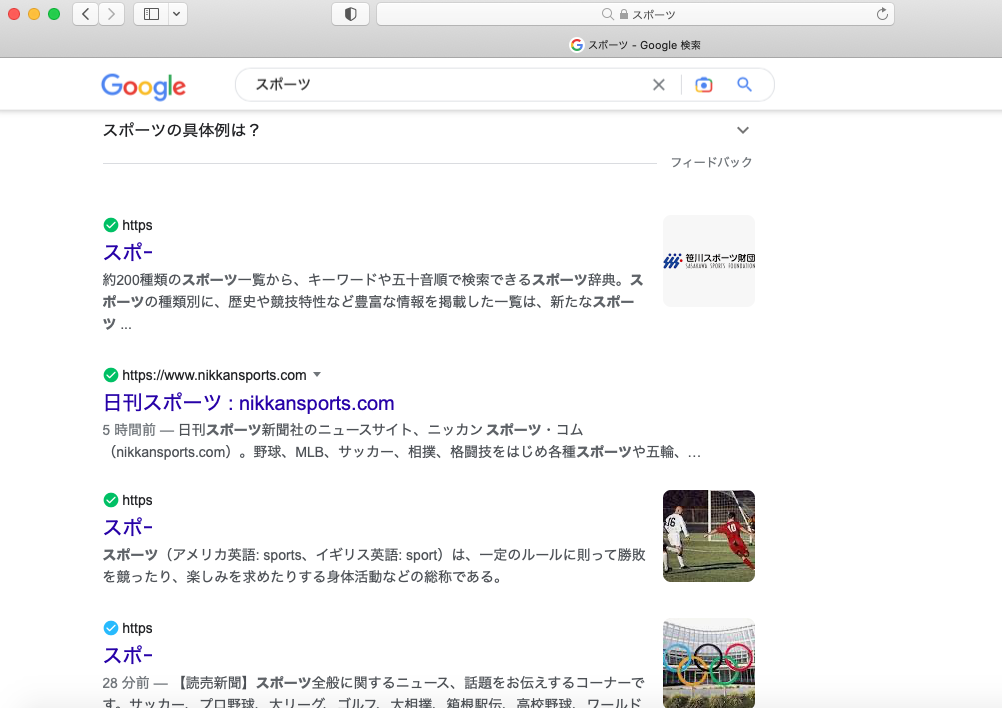 MacSafariでgoogleの検索を行うと、検索結果の文字が画像のように最初の2文字くらいしか表示されないものがあります。検索結果の文字が見えないと何が書いてあるかわからず不便です。これはSafariの設定を変えれば改善するのか、googleの仕様でしょうか?検索の内容によっては全て文字が表示されることもありますが、感覚で9割くらいの検索結果で画像のような状態となります。Chromeでは同じ内容を検索しても正常に表示されますのでSafariを使わなければ良いだけかもしれませんが。対処法をご存知の方がいらっしゃったら、よろしくお願いします。