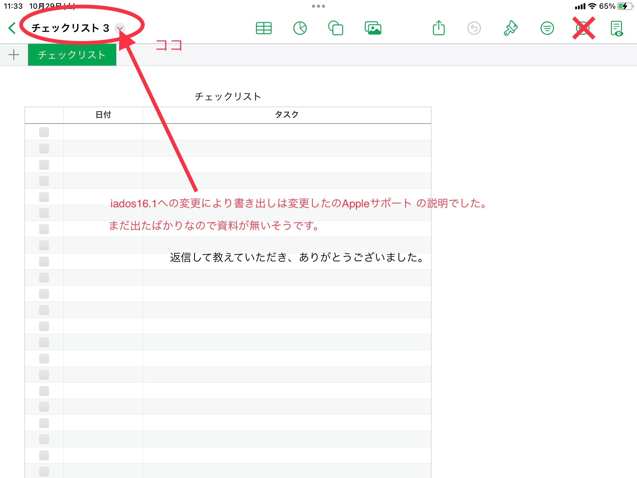 iPad第5世代にiPados16.1をアップデートしたら、Numbers・pageの書類がPDFに書き出し出来なくなってしまった