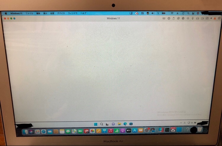 名前が誤字っているのは気にしないでください。それで本題入るのですが、「parallels desktop」を開くと画面が真っ白になります。真っ白といっても下にアイコンバーは表示されています。でもそこに表示されているアイコンをタップしても無反応です。自分の説明だと分かりにくいと思うので写真を載せておきます。